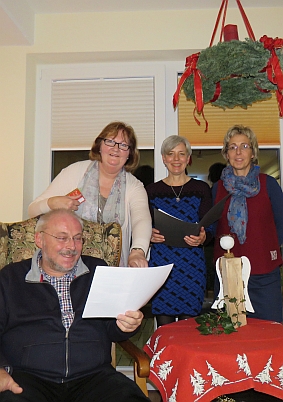Die Mitglieder der Literaturschmiede haben im Senioren- und Pflegeheim "Lebensbaum"den Gästen aus dem Stadtgebiet und Bewohnern der Einrichtung eine wunderbare Einstimmung auf die Adventszeit beschert. Anja Förster, Gabriele Lingen, Ruth Henning und Dr. Uwe Förster suchten unter anderem Antwort auf die Frage "Heißt es Nikoläuse oder Nikolause?", boten eine moderne Interpretation des Klassikers "Alle Jahre wieder", amüsierten die Gäste mit der Geschichte "Ein Fest ohne Baum- und Bratenspitze" und entführten in den "Advent am Marienplatz". Zur Freude der Besucher erklangen Weihnachtslieder von der Schallplatte und rundeten das abwechslungsreiche Programm stimmungsvoll ab.